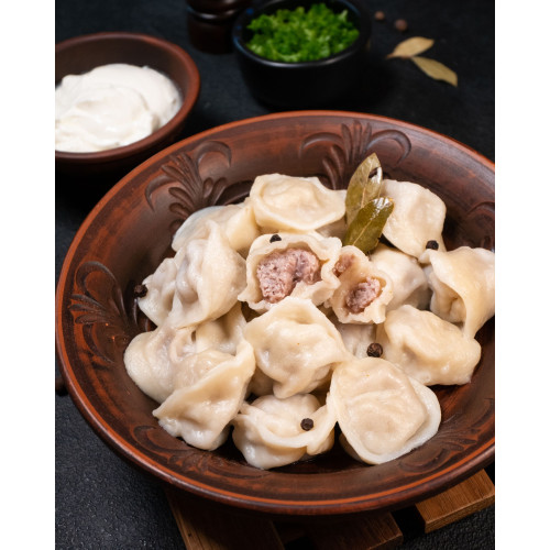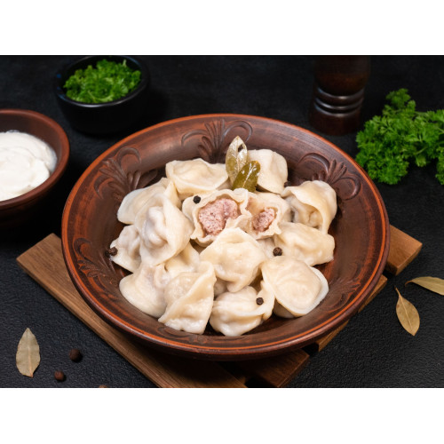 Pelmeni are delivered frozen and cook in just 5–7 minutes after the water returns to a boil, so they’re ideal when you want a hot meat dish without spending time on preparation. Serve them with butter, sour cream or your favorite sauce to highlight the delicate flavor of veal.