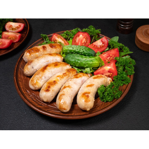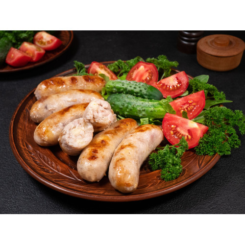 Juicy grilled chicken sausages with a tender, flavorful interior and a lightly browned, aromatic casing. These sausages combine lean chicken fillet with melted cheddar cheese, creating a rich yet balanced taste with a creamy texture inside and a satisfying bite outside. Perfect for grilling, baking or pan-frying, they deliver a hearty, protein-packed meal that is both comforting and convenient.